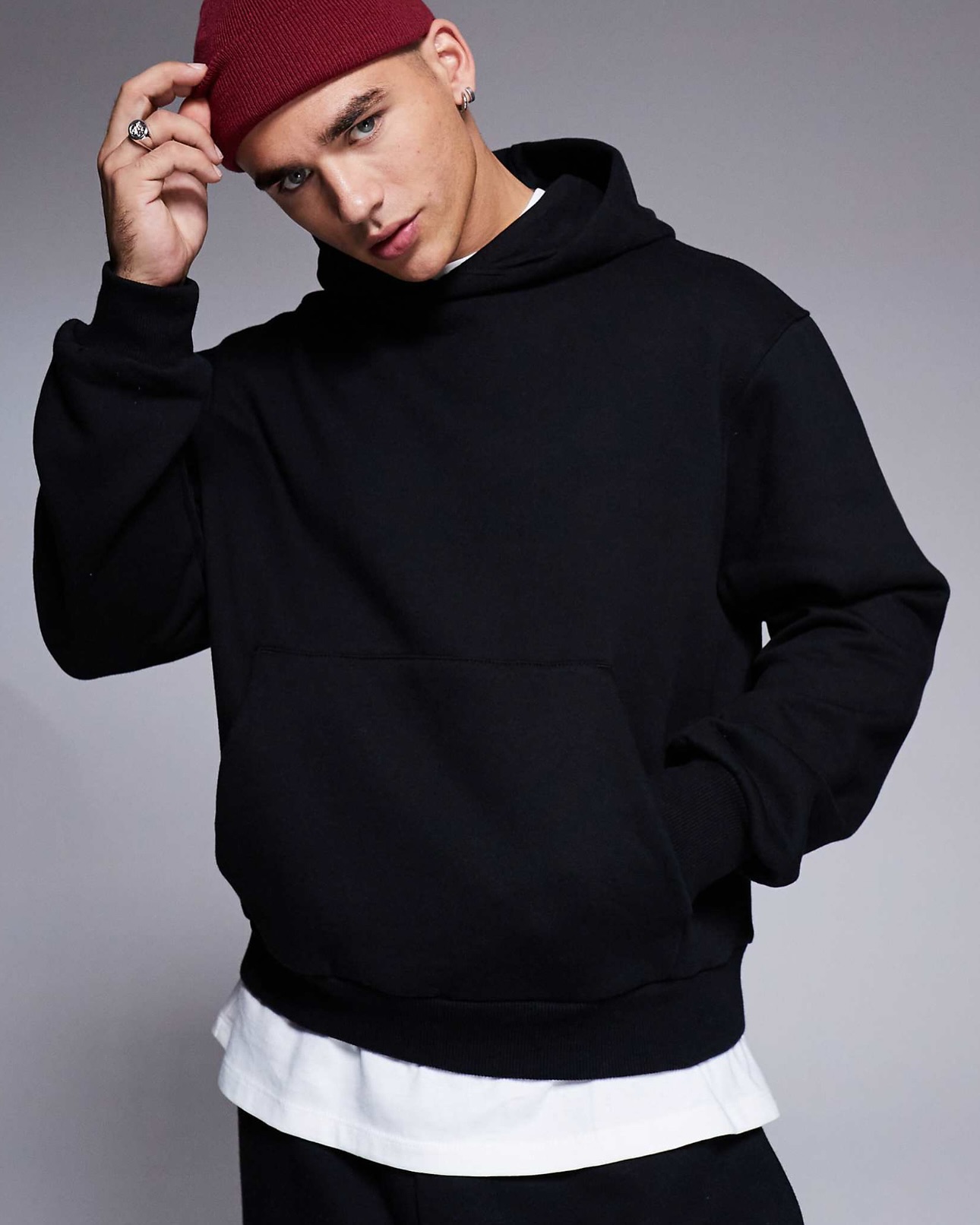 ASOS DESIGN premium heavyweight boxy oversized hoodie 400gsm in black