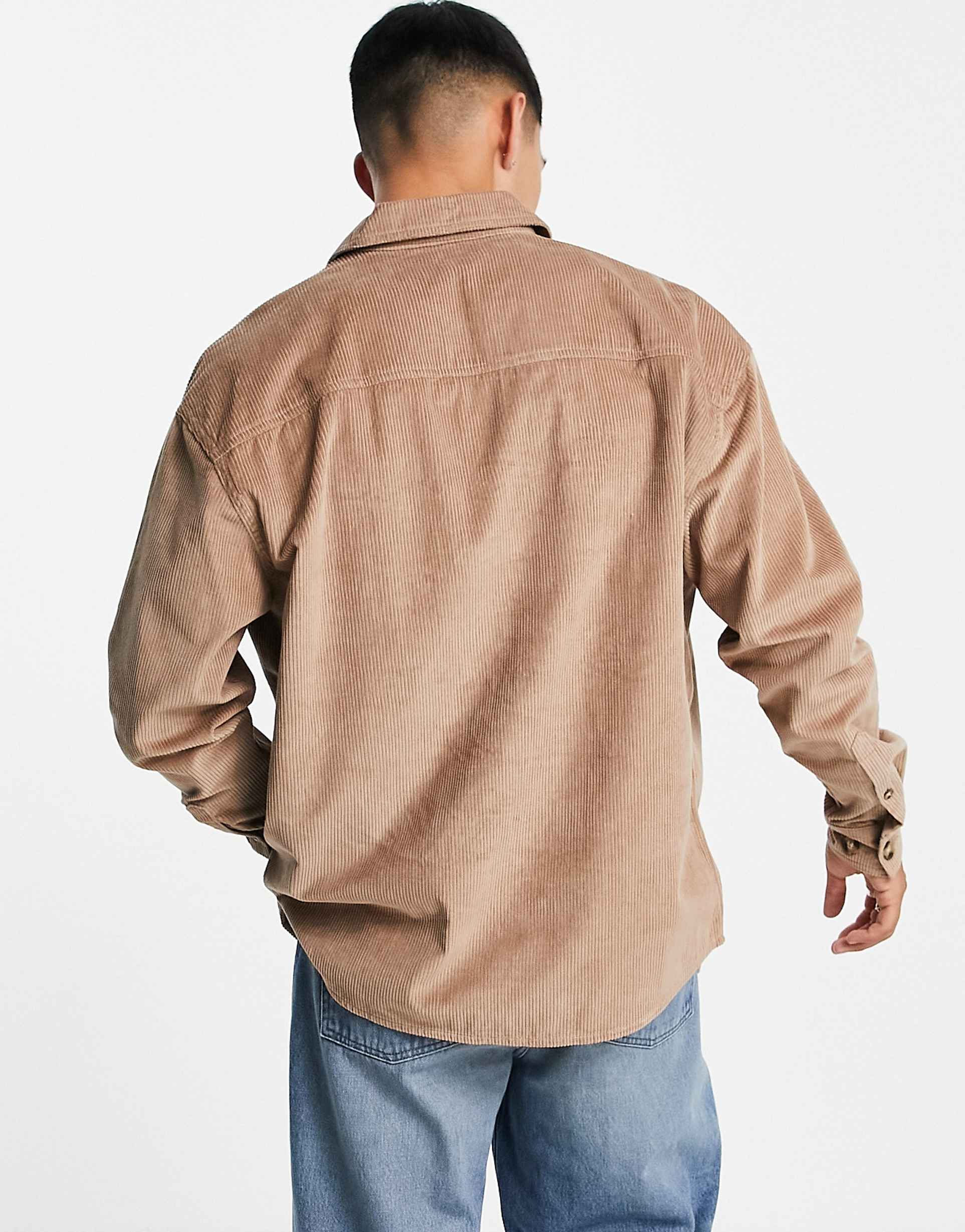 ASOS DESIGN oversized 90s style corduroy shirt with double pockets in brown