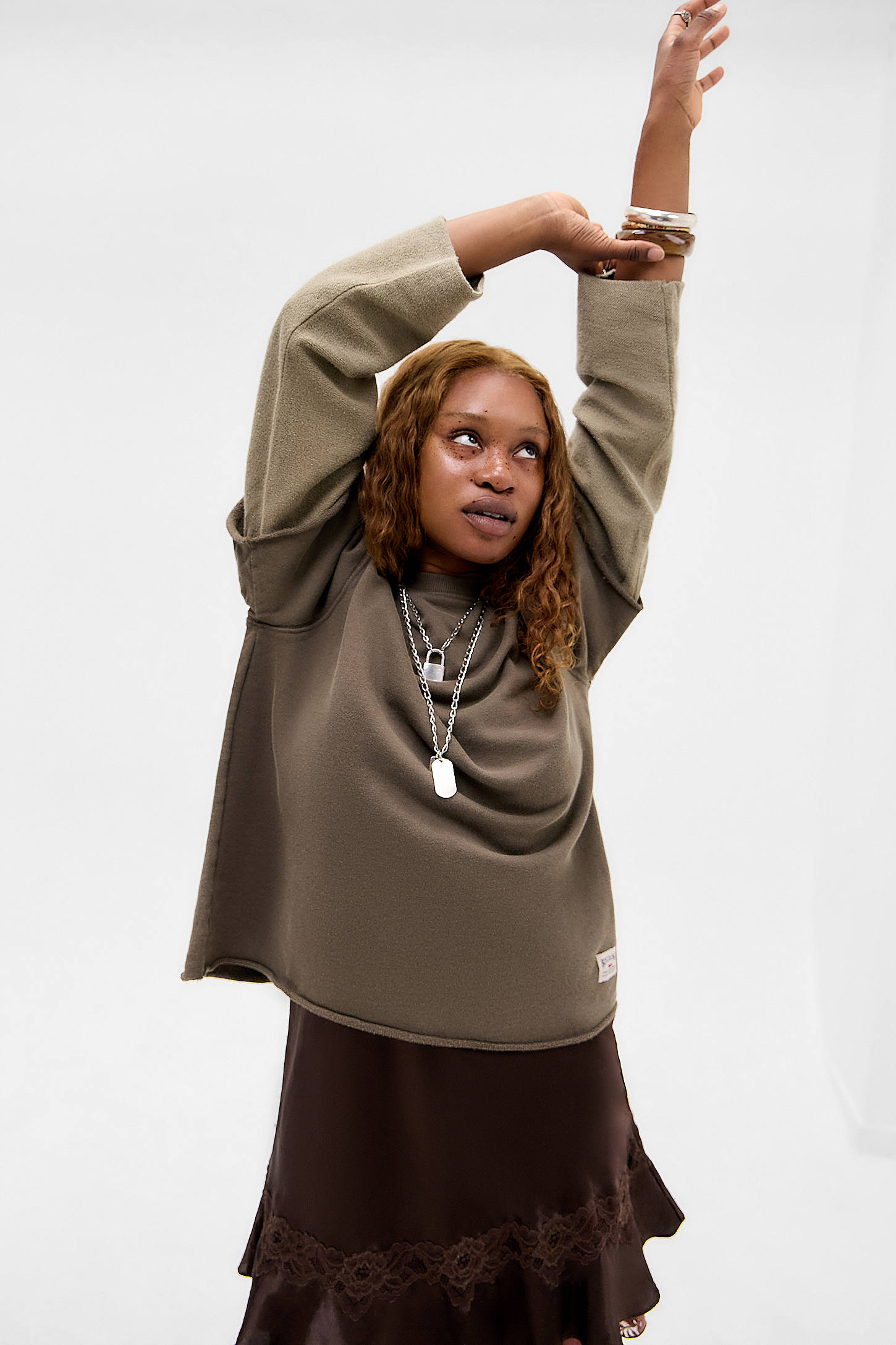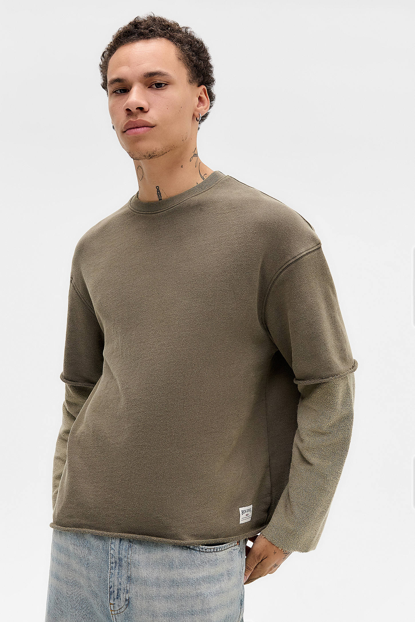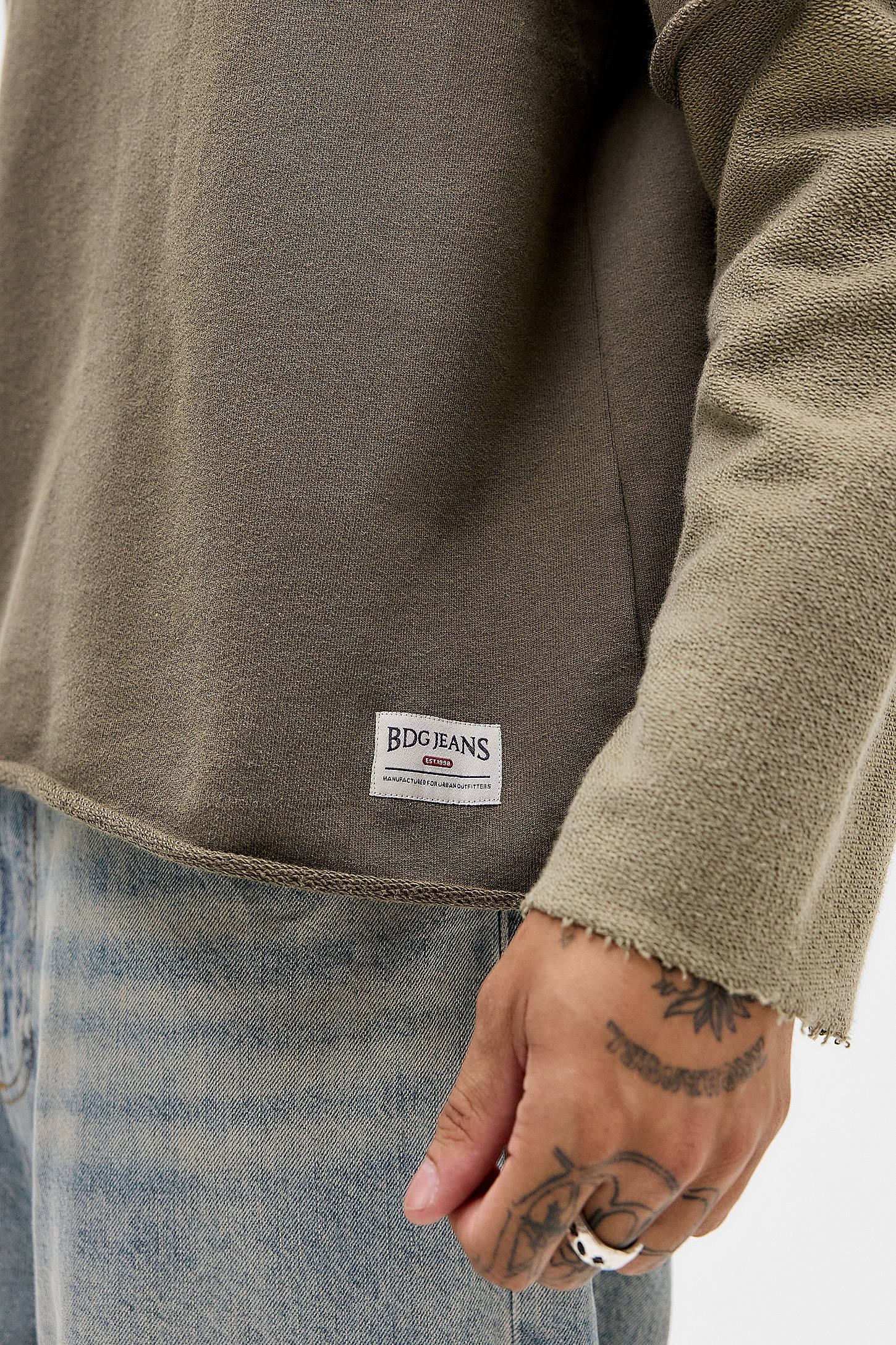 Laid-back sweatshirt from BDG with long, layered sleeves. Relaxed silhouette crafted from soft cotton, complete with a crew neck, drop shoulders and raw edges. UO exclusive.