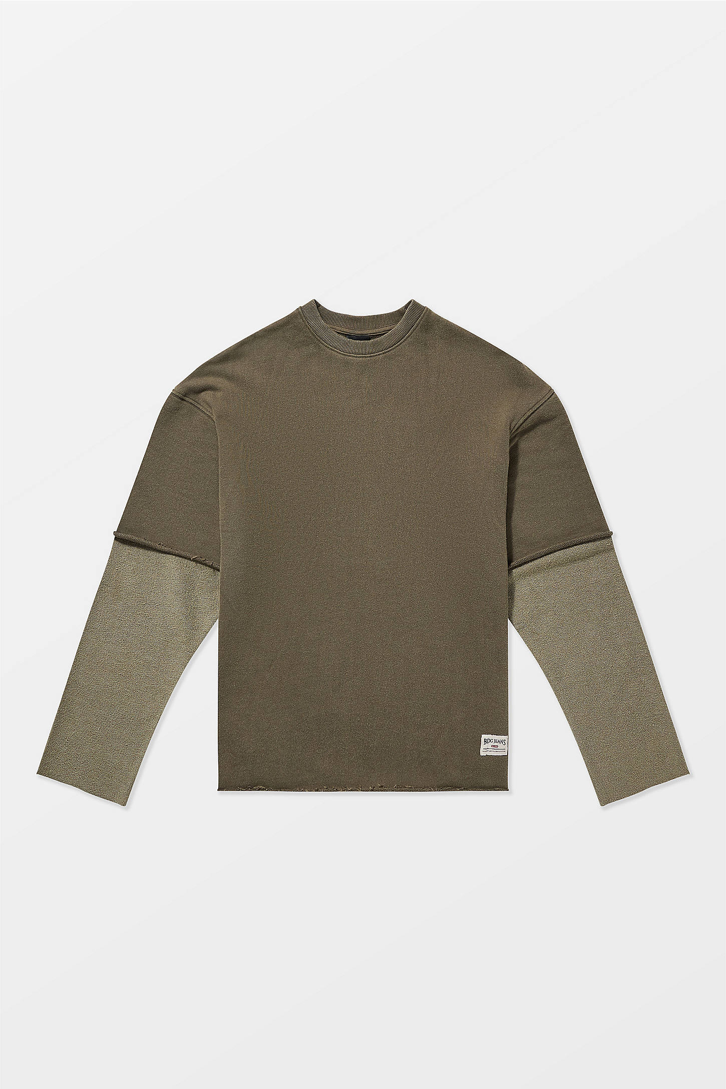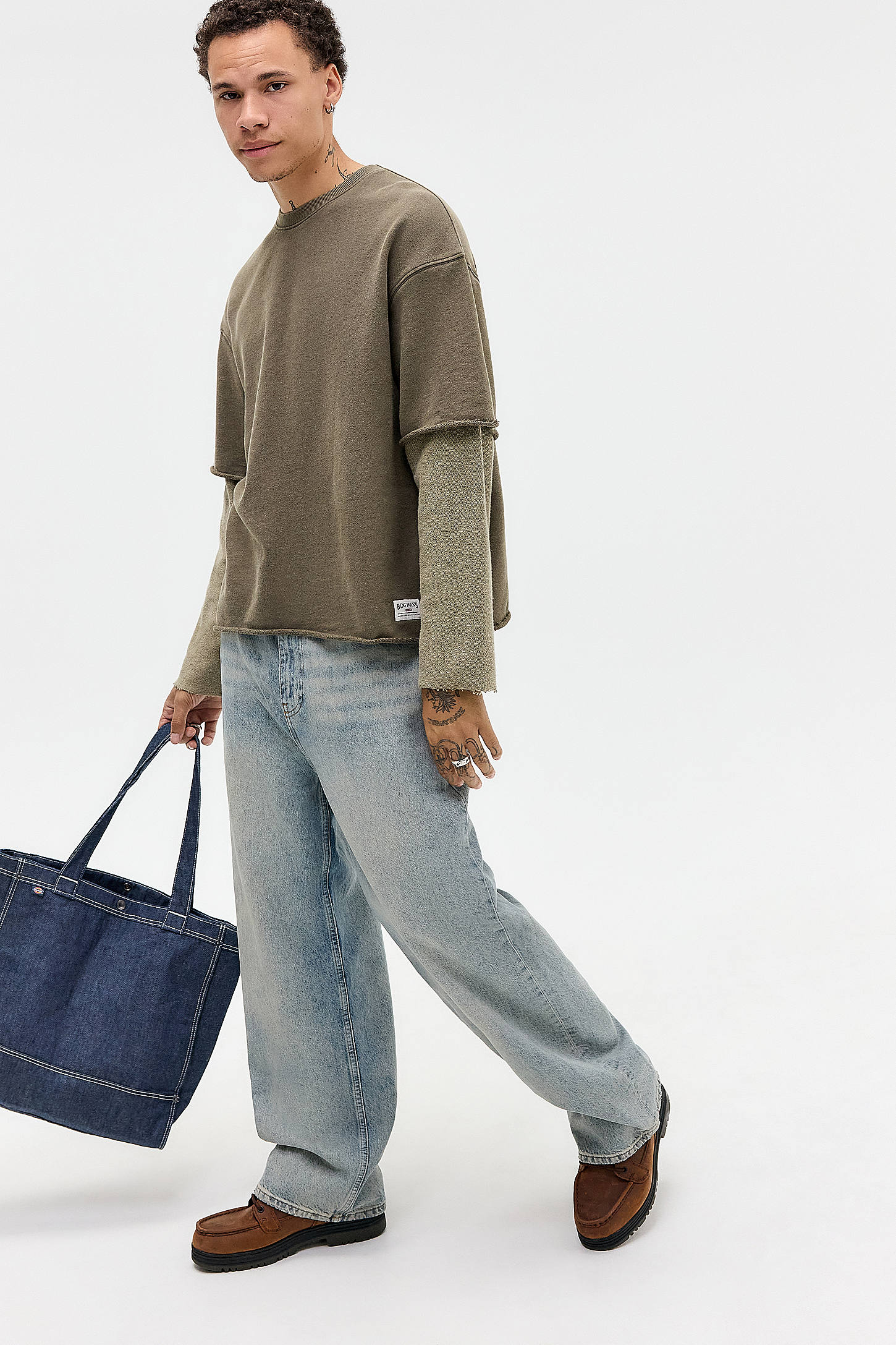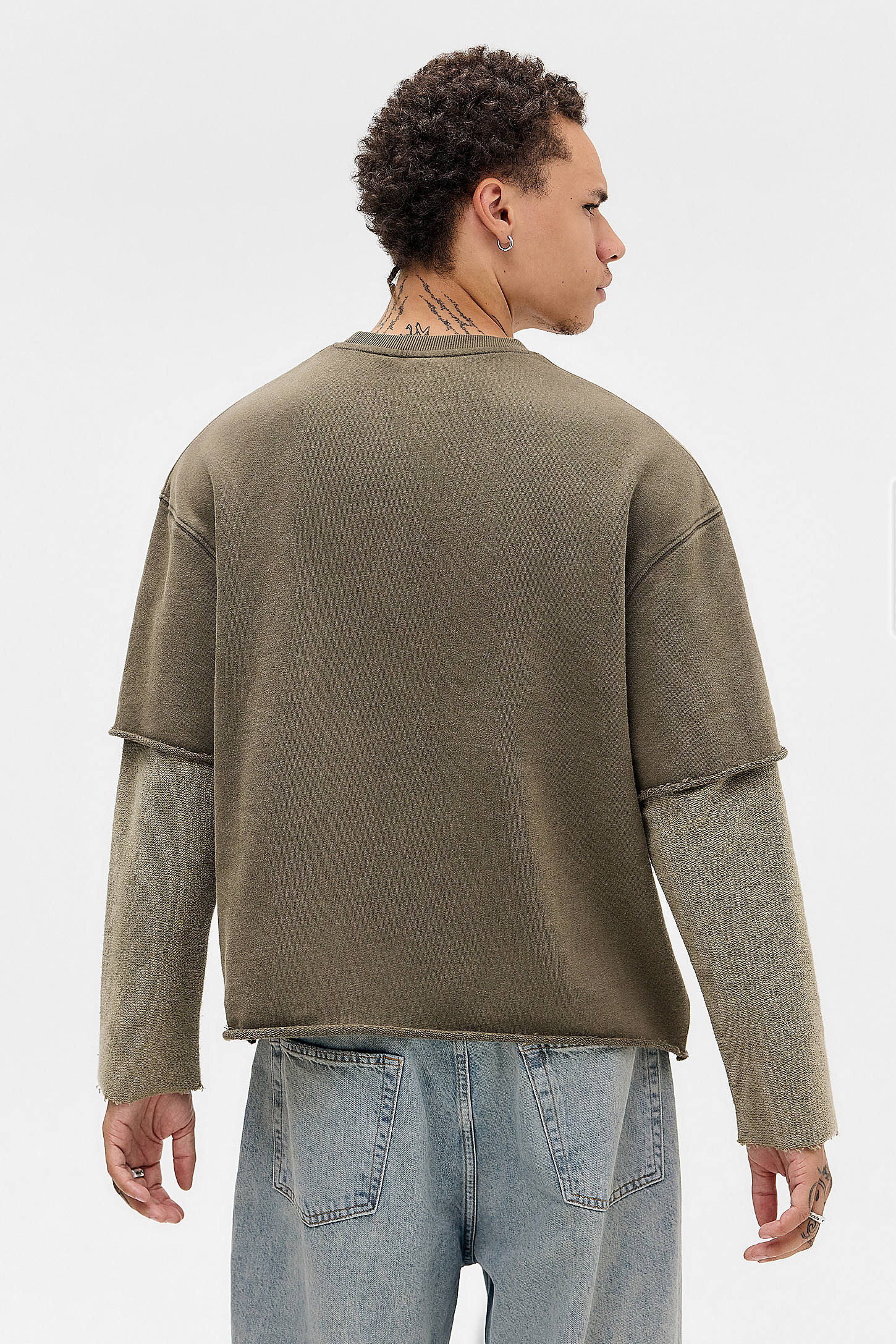 Laid-back sweatshirt from BDG with long, layered sleeves. Relaxed silhouette crafted from soft cotton, complete with a crew neck, drop shoulders and raw edges. UO exclusive.