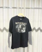 T-shirt with a round neck and double striped sleeves. Embossed BEETLEJUICE ™ print on the chest and back.
