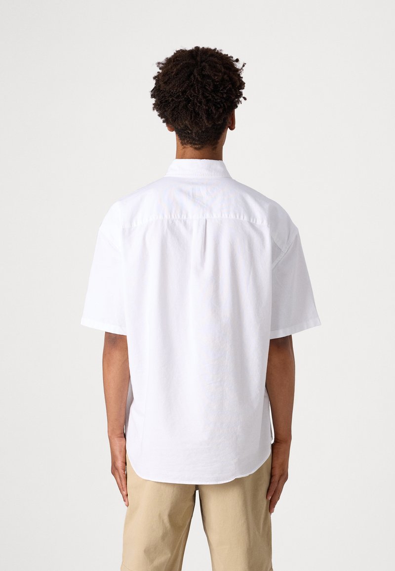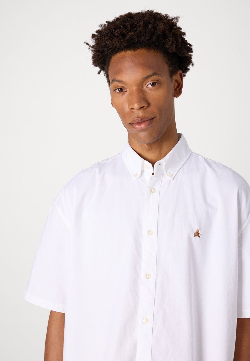 GAP men’s oversized oxford Short Sleeve shirt with the Brannan Bear embroidery in a White