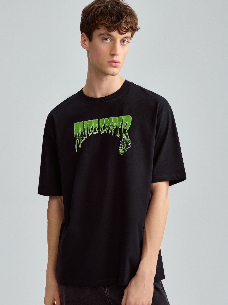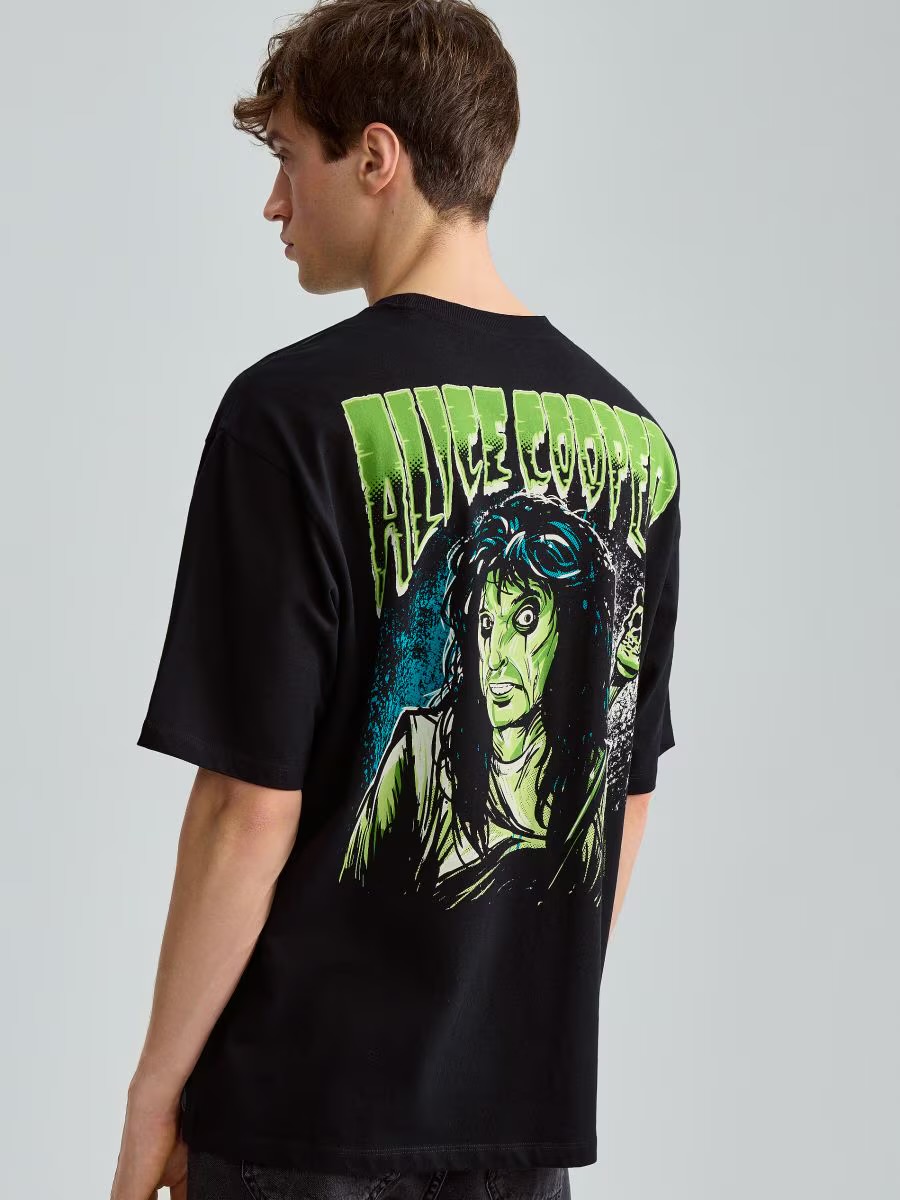 House Brand cotton T-shirt featuring a classic Alice Cooper graphic print. Designed with a comfortable regular fit and soft, breathable fabric, making it ideal for everyday wear. Easy to style with jeans or cargos for a casual, band-tee look.