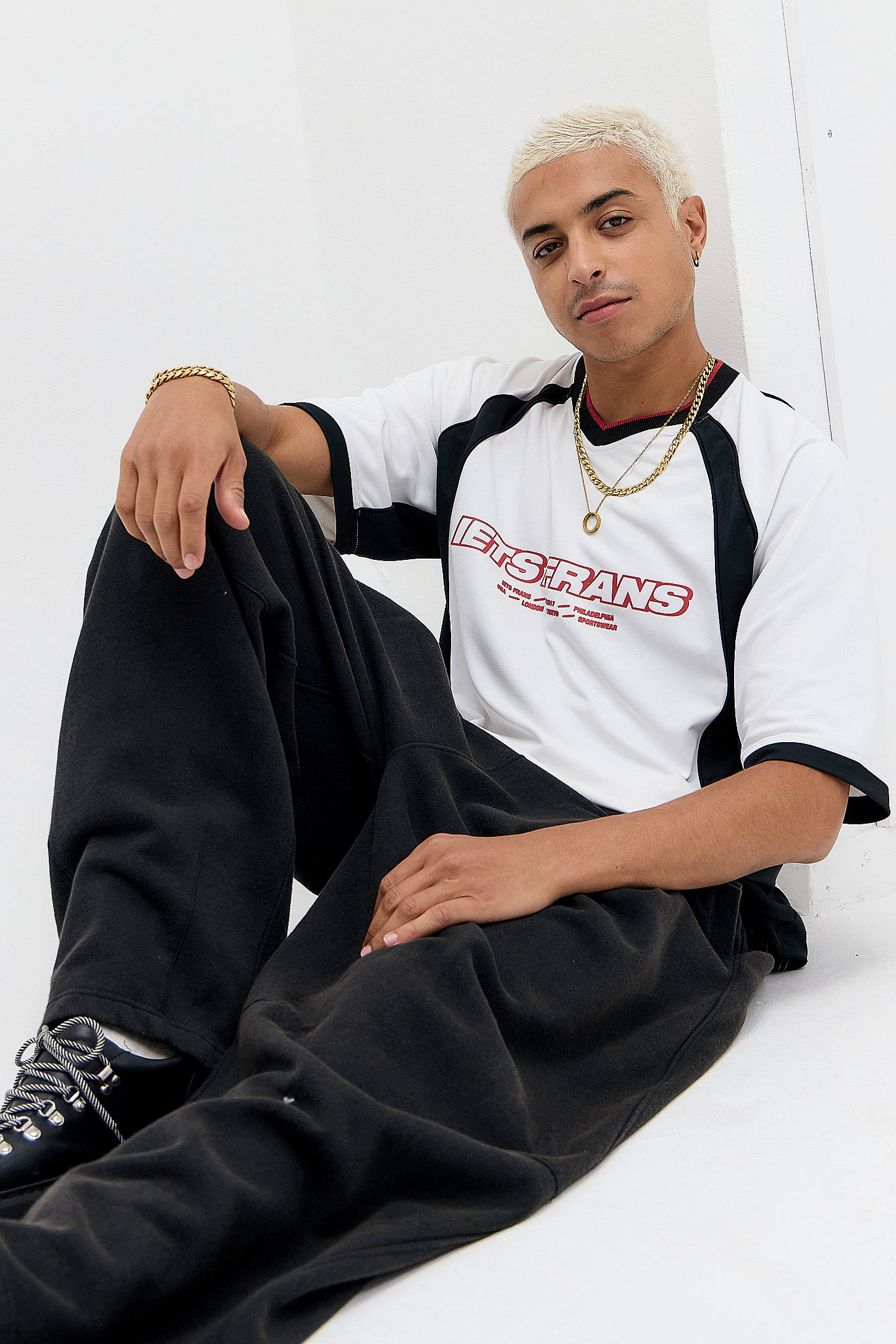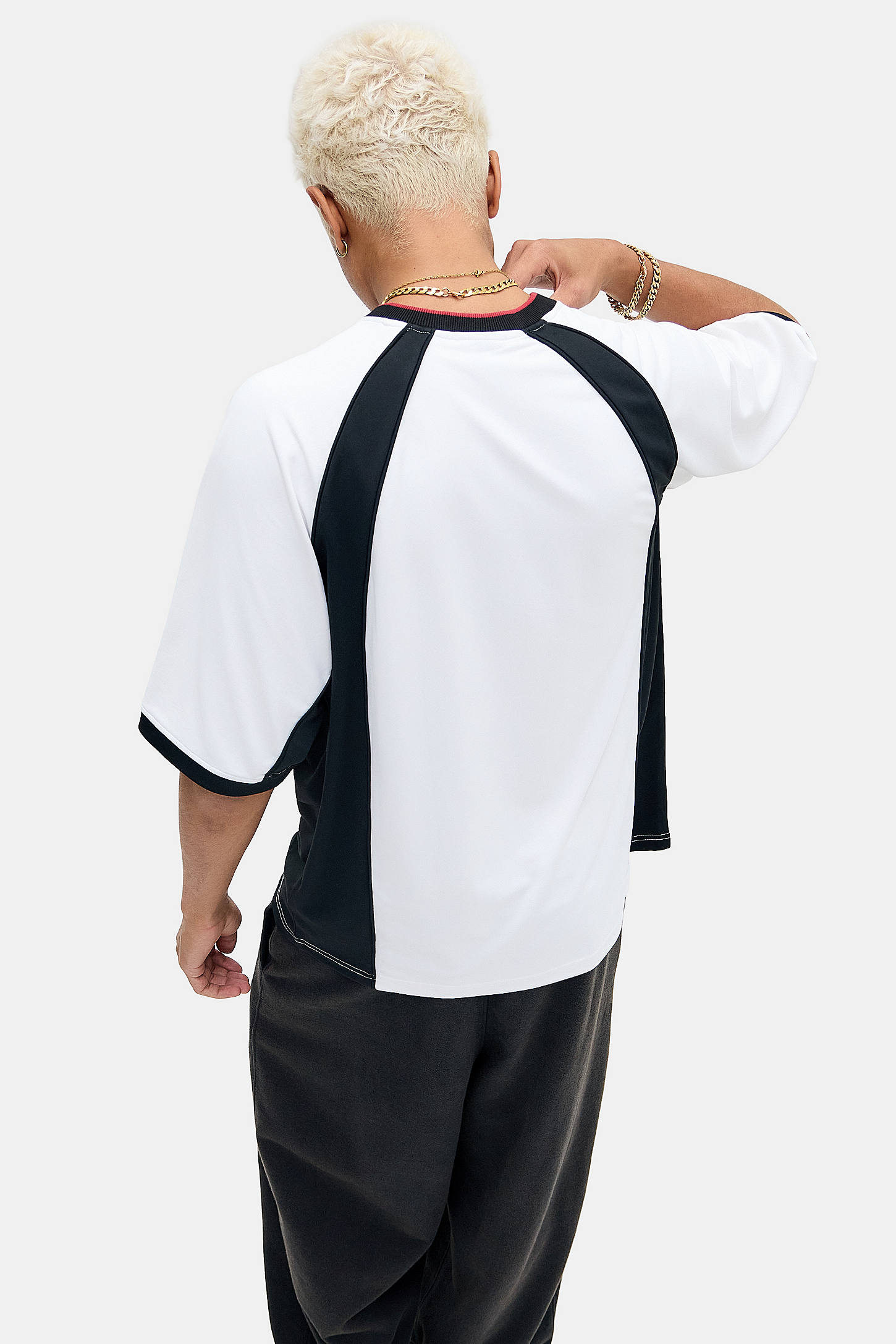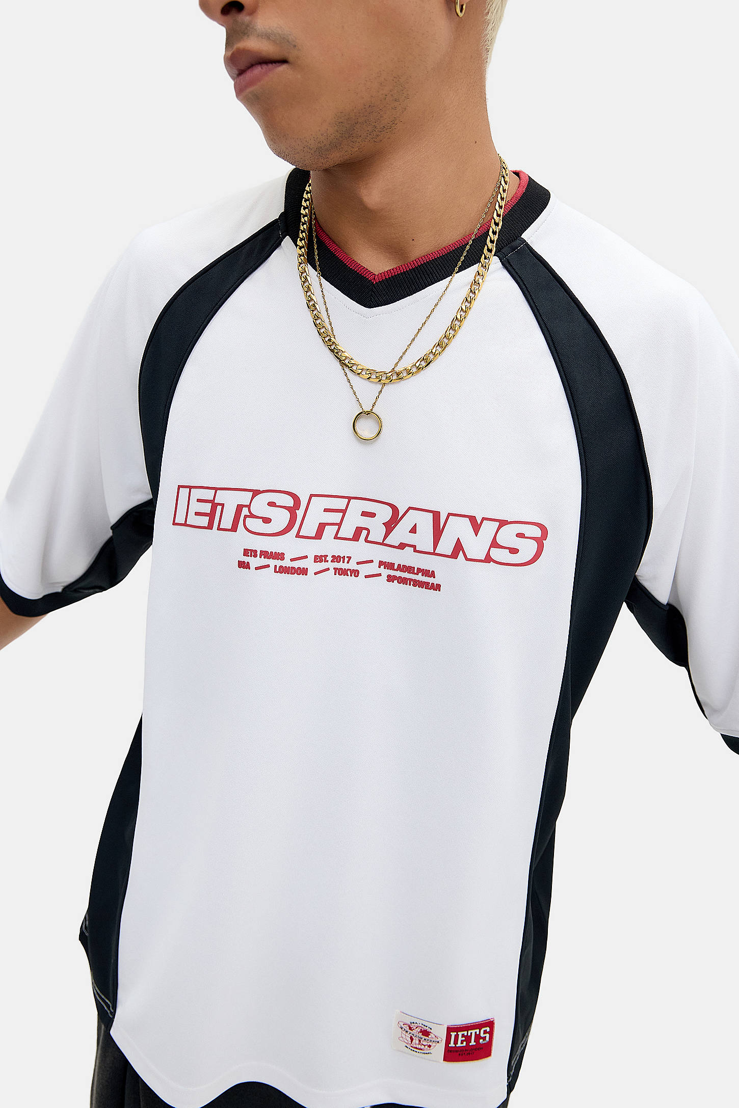 Sporty tee from iets frans… with a relaxed fit. Panelled design crafted from cotton with a ribbed V-neck, short sleeves and a logo print to front. Only at UO.