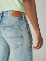 - Mid rise with a slim fit and narrow leg
