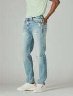 - Distressed light vintage wash denim