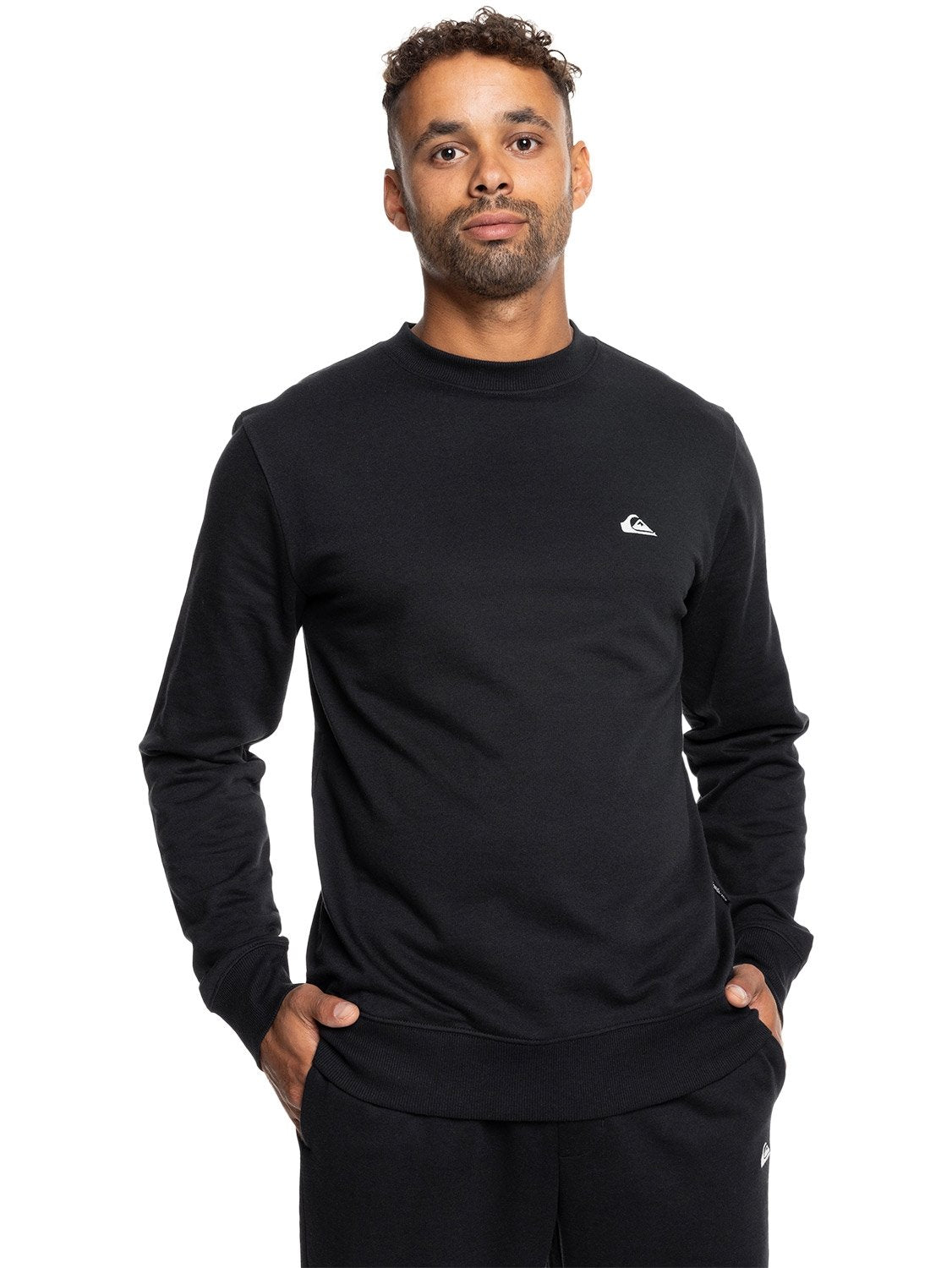 Quiksilver Basic Crew Sweatshirt in black with clean embroidery on the chest for a simple, classic look.