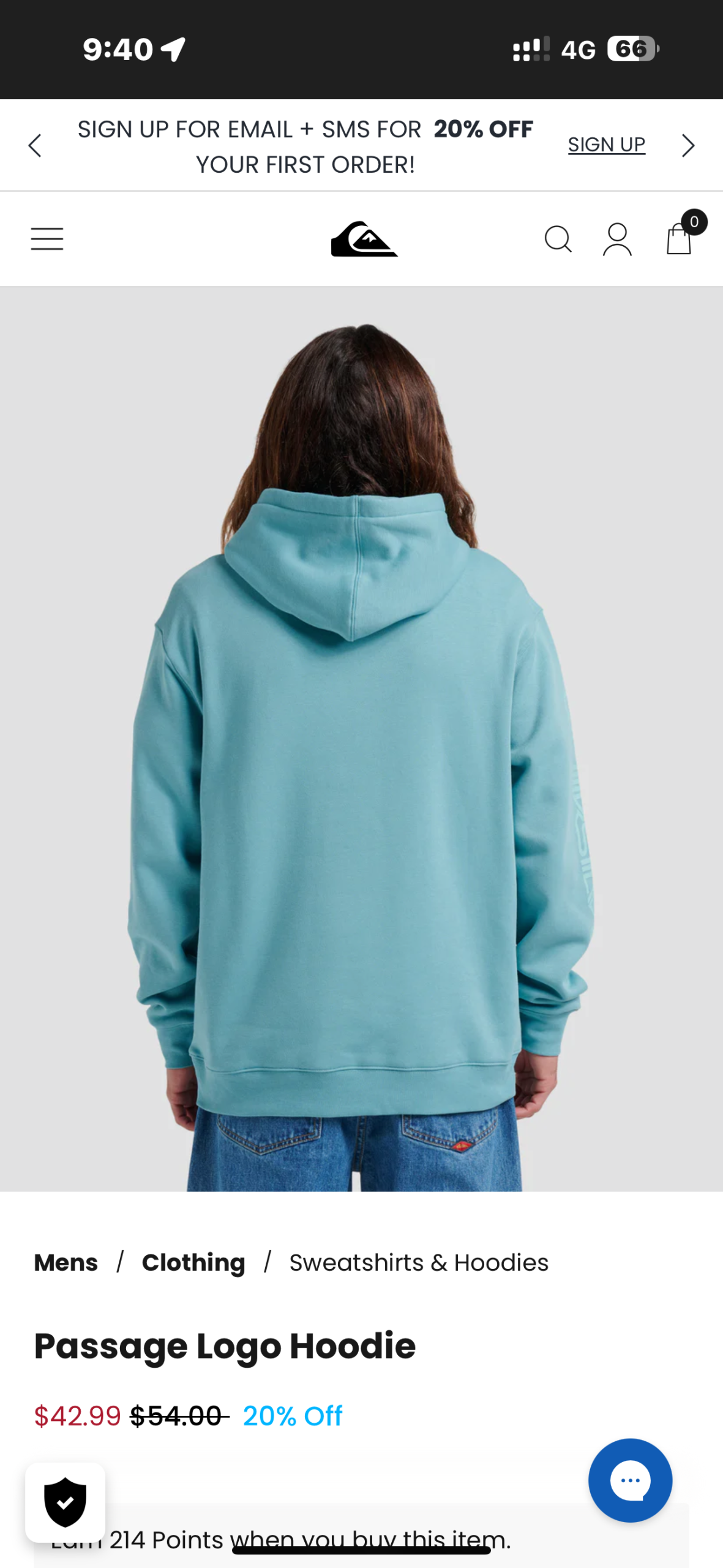 Quiksilver Passage Logo Hoodie in the Dusty Turquoise