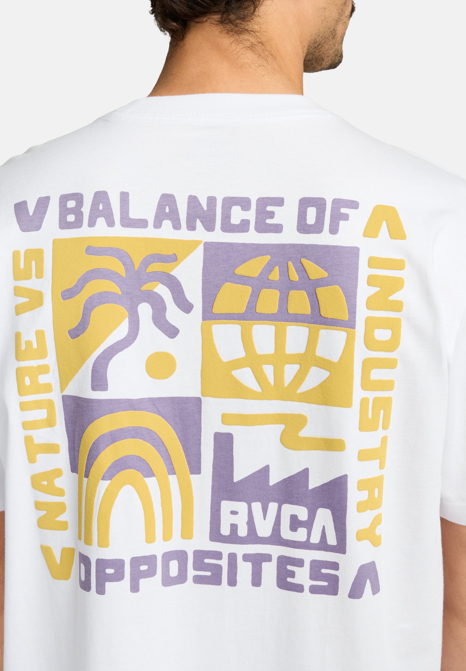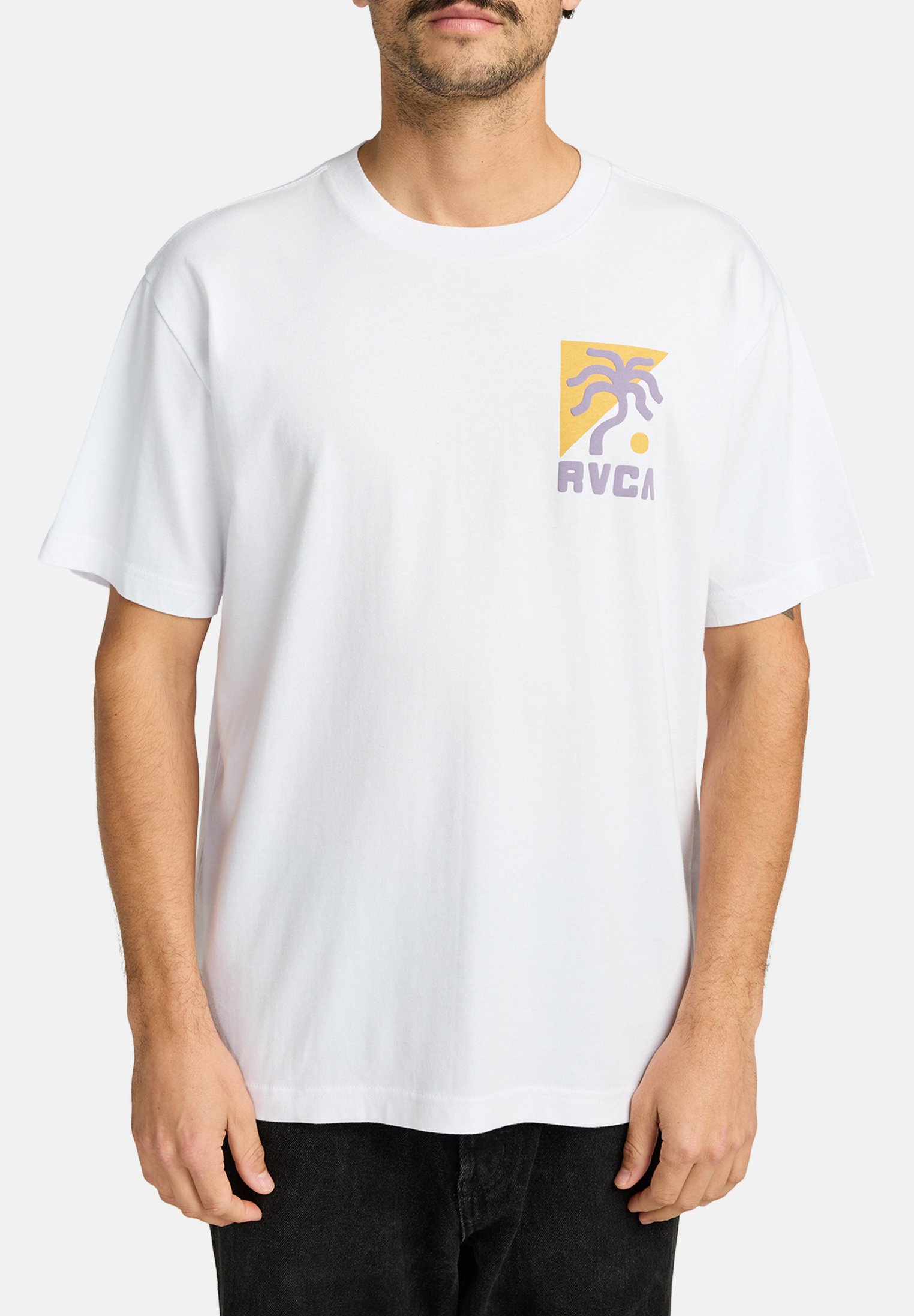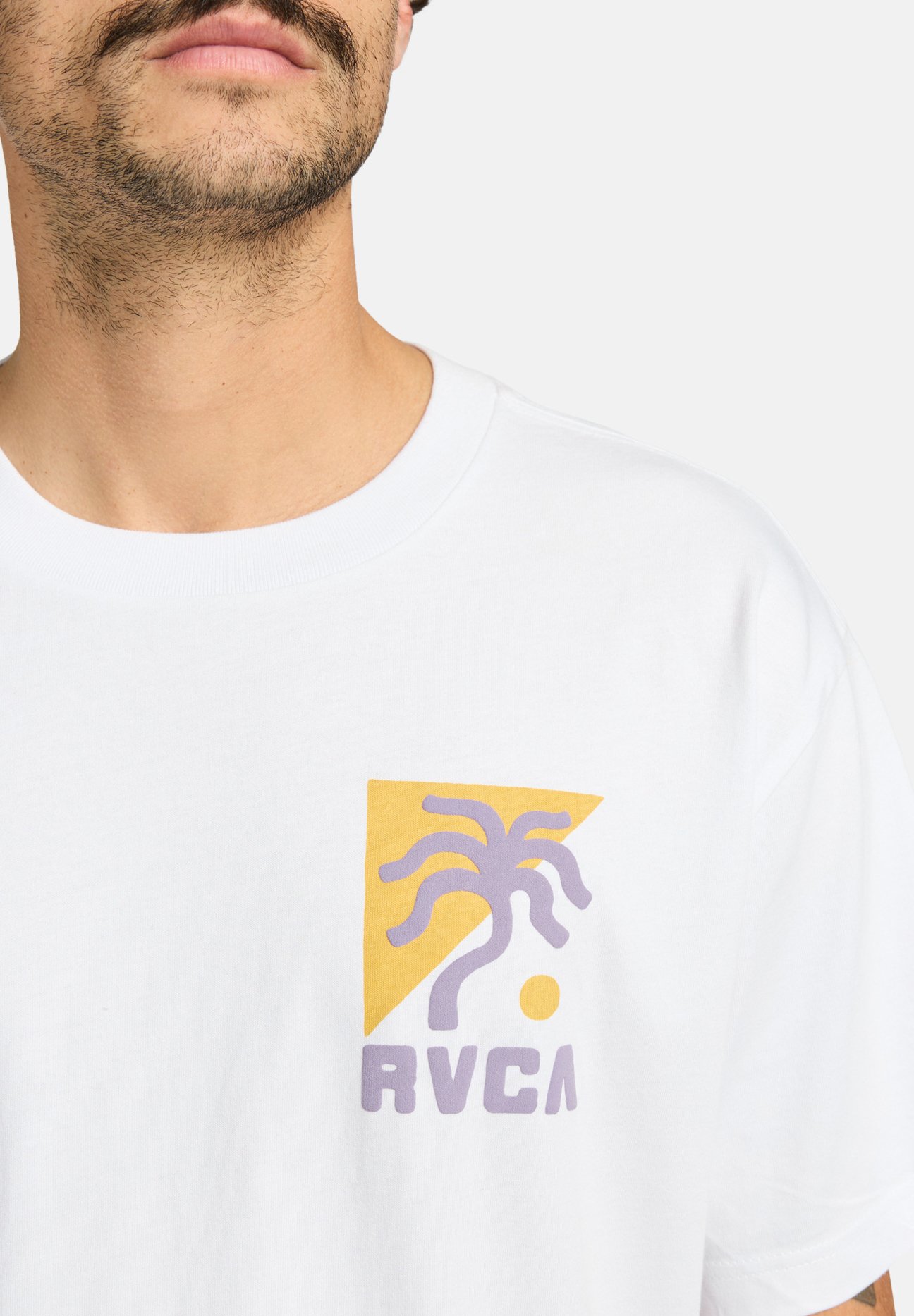 A relaxed-fit tee made of heavyweight cotton, featuring bold puff-print graphics on front and back, reflecting RVCA’s blend of street heritage and premium casual styling.