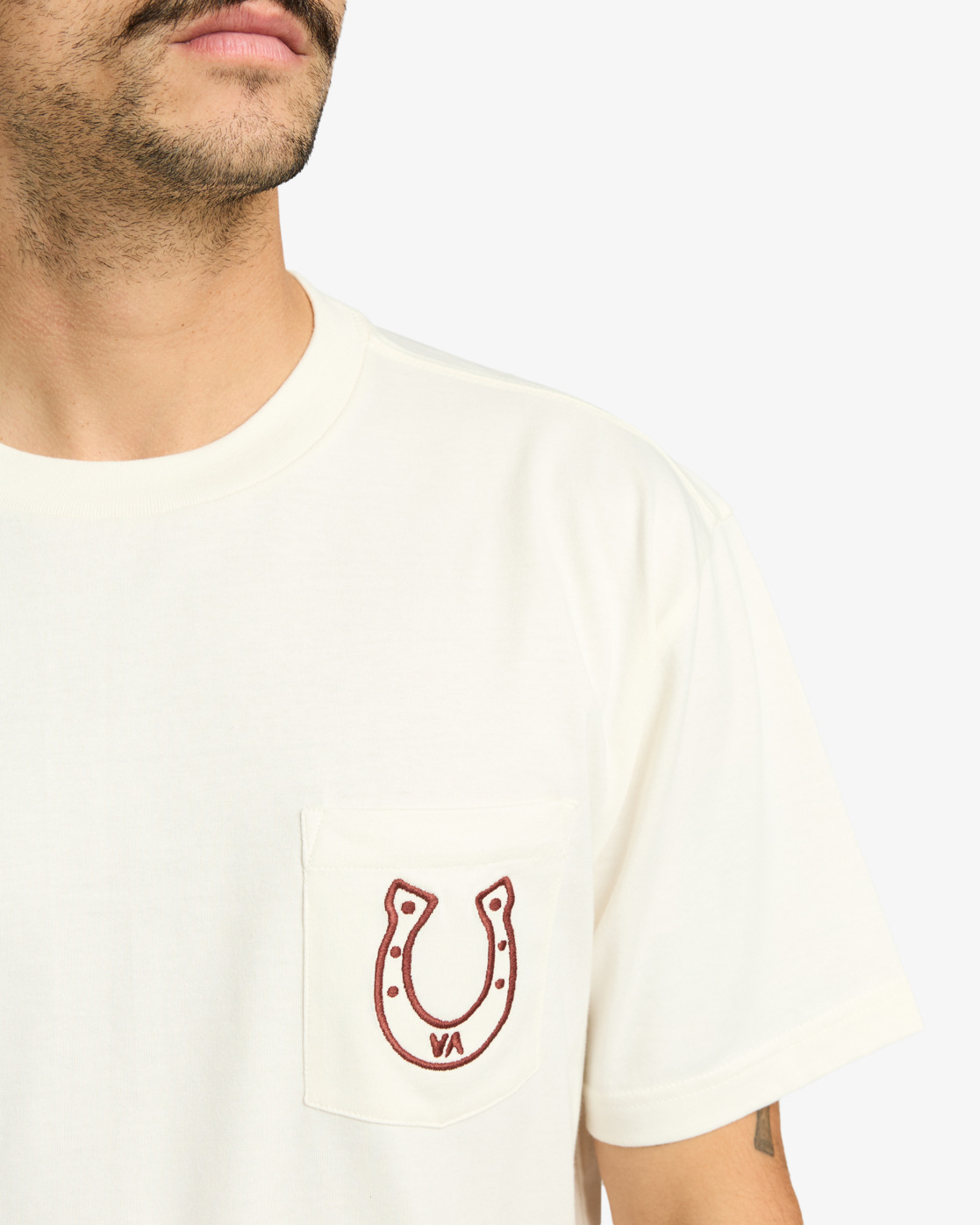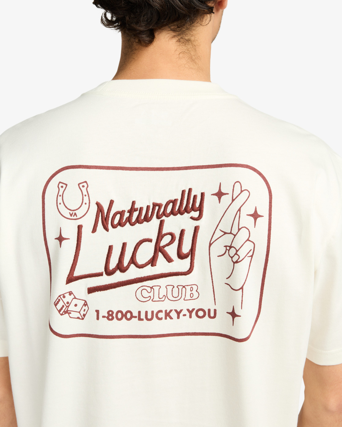 A relaxed‑cut cotton tee from RVCA, featuring a chest pocket with embroidered detail and bold graphic print on the back under the “Lucky You” motif perfect for everyday wear with a street‑inspired twist.