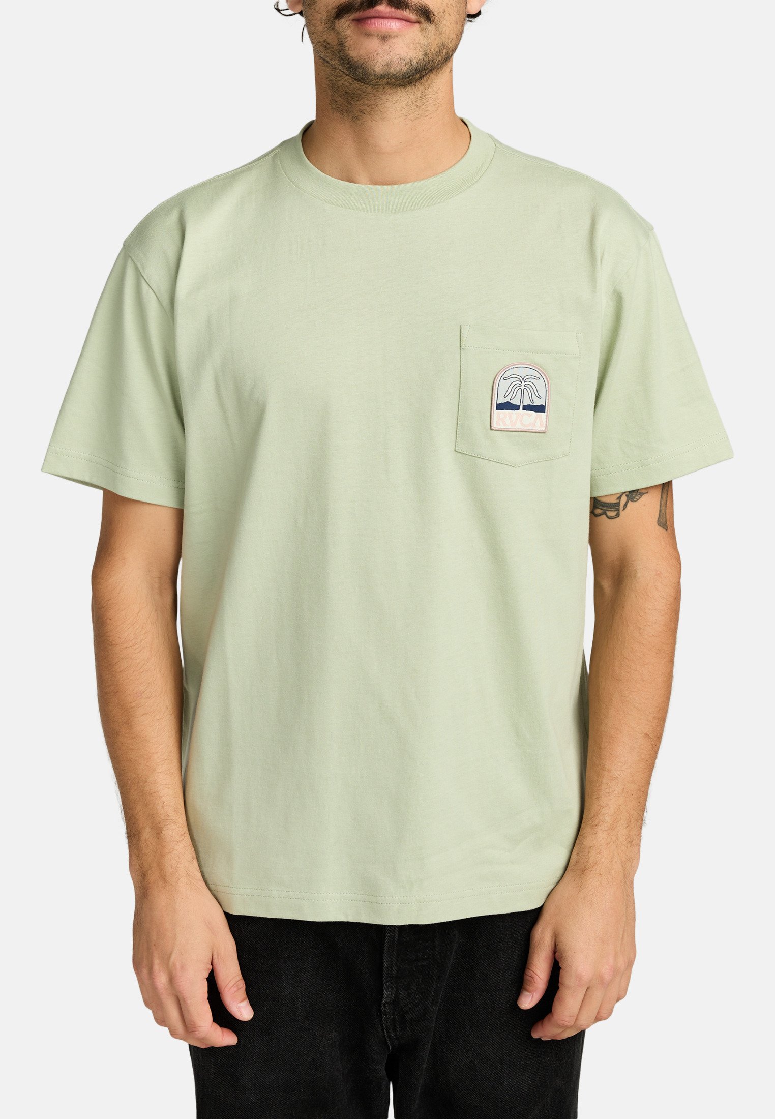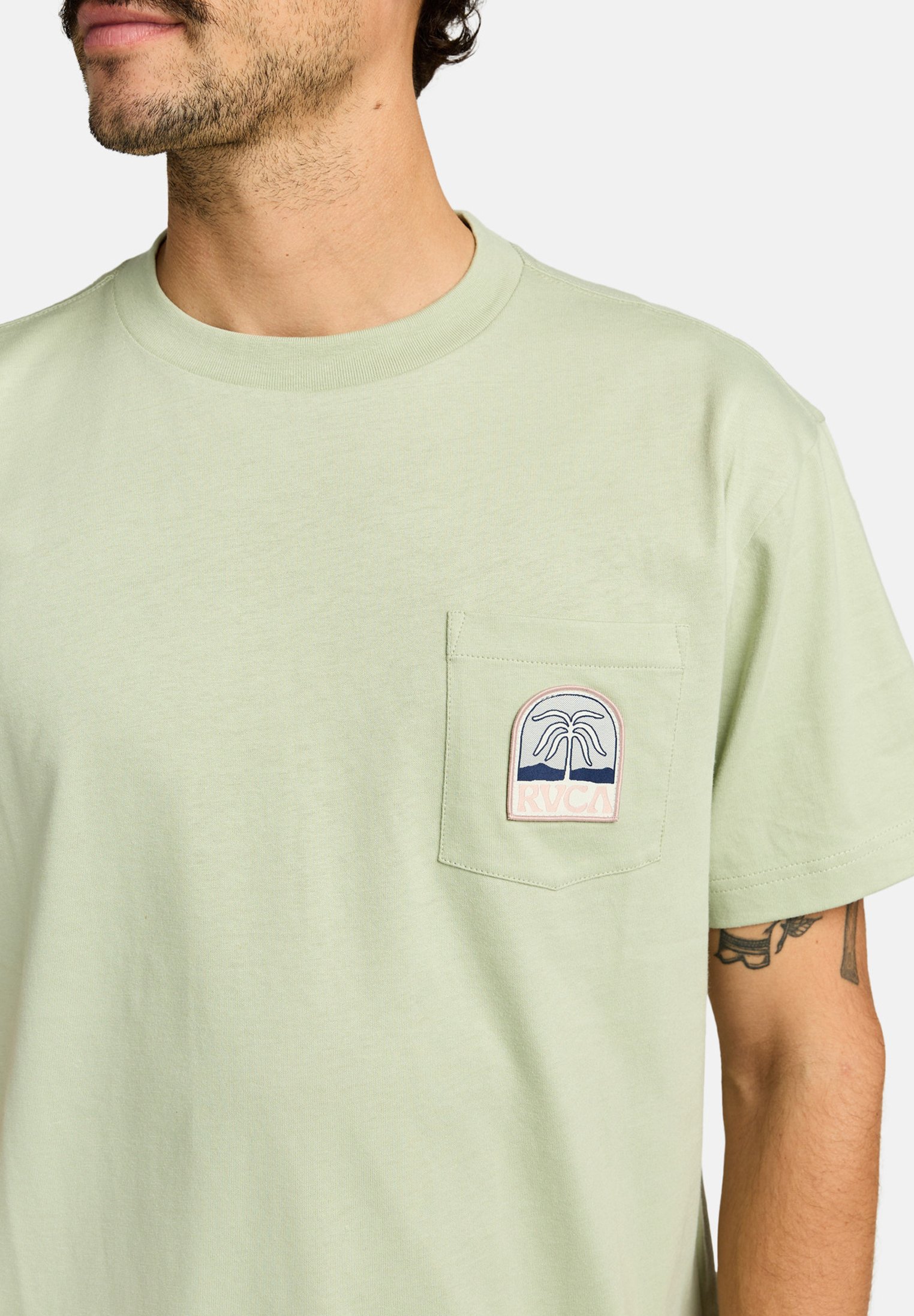 A relaxed‑fit tee made from 100% organic heavyweight cotton, featuring a left chest pocket and subtle RVCA branding suitable for casual everyday wear.