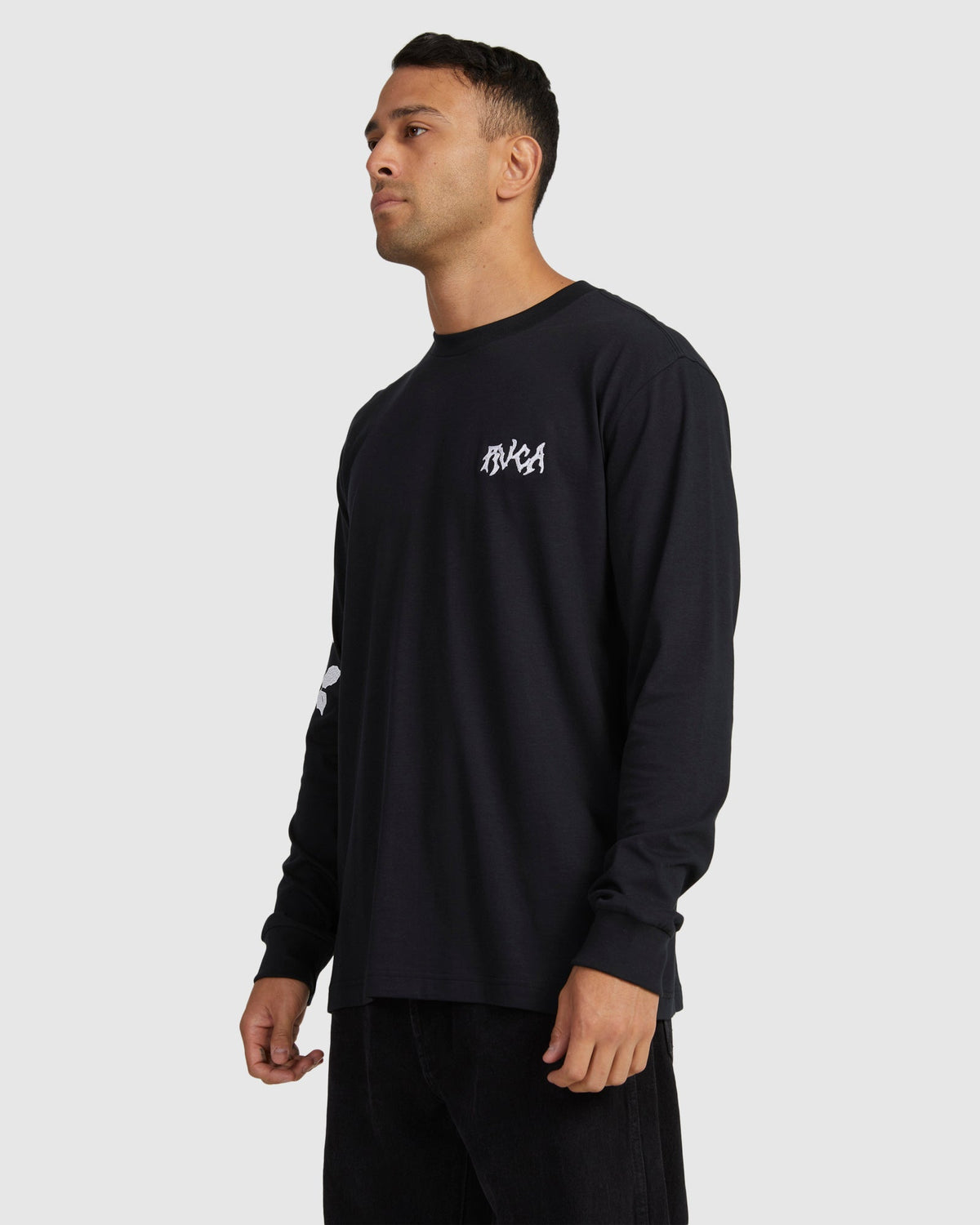 The RVCA “Roses” Long‑Sleeve T‑Shirt in black brings together graphic detail and durable construction for a standout piece. The body is crafted from 100% cotton jersey, offering a comfortable hand‑feel and robust build suitable for colder‑layer wear. One listing confirms the black color way in long‑sleeve form. It features a relaxed fit which provides ample ease without looking baggy the neckline is a classic ribbed crew, and the sleeves extend to full length for additional coverage and layering potential.