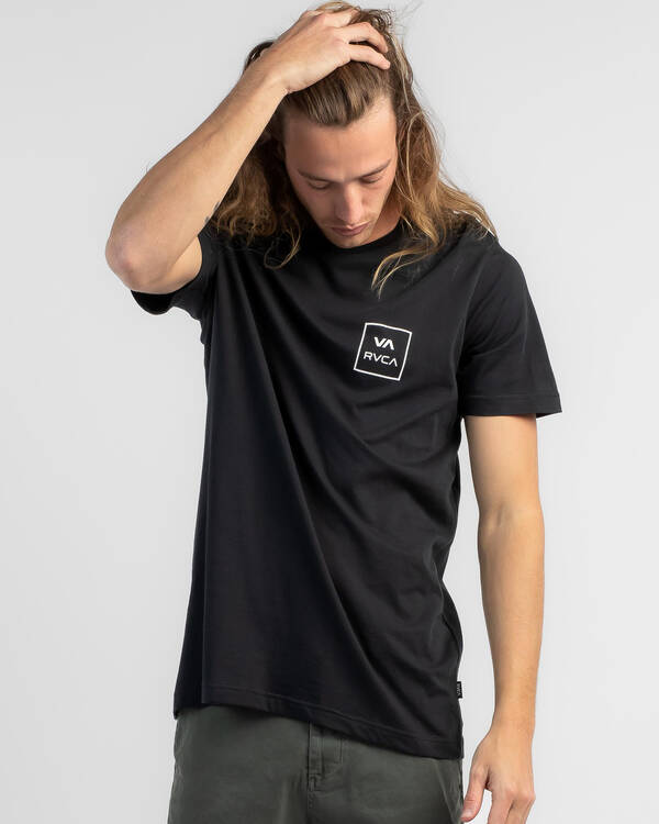 A crew-neck short-sleeve tee featuring bold RVCA “VA All The Way” graphics on chest and back, made from a comfortable cotton-blend and available in Black