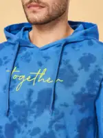 Exhibit your rich sense of style by wearing this blue hooded regular fit hooded sweatshirt from Urban Ranger by Pantaloons. Tailored to sartorial perfection from premium quality fabric, it assures a soft and soothing touch against the skin. Exuding full sleeves, it is sure to fetch you compliments from all. The tie and dye pattern makes it a wardrobe classic.