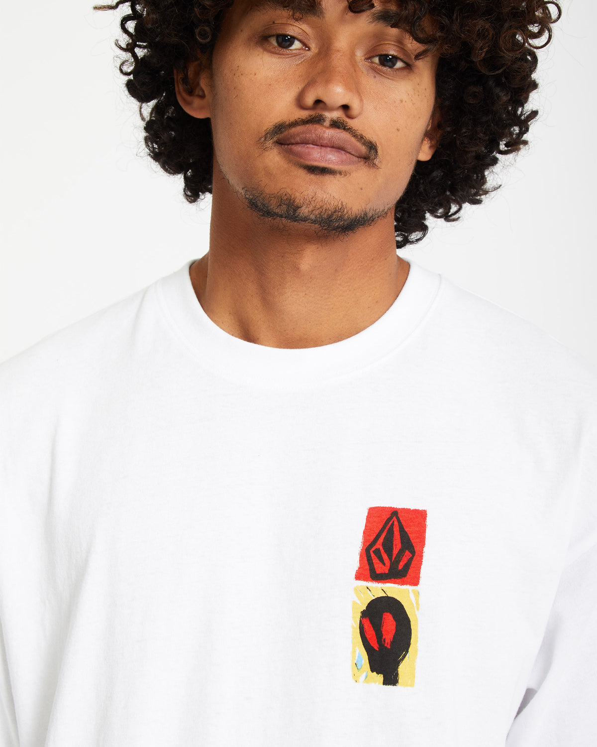 The Volcom Gonyvaders T-Shirt in White is a Featured Artist series piece designed by team rider Gony Zubizarreta, combining bold illustrated artwork with a clean skate-ready silhouette.