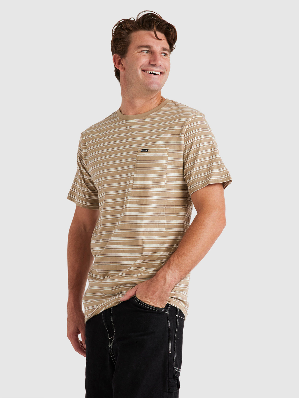Featuring an all-over striped design, this tee stands out without being loud, while the chest patch pocket with a woven Volcom label adds a functional and refined touch. The regular fit sits naturally on the body, making it easy to style whether you’re keeping it casual or going for a cleaner street look.