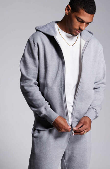 ASOS DESIGN premium heavyweight oversized zip through hoodie 400gsm in grey marl